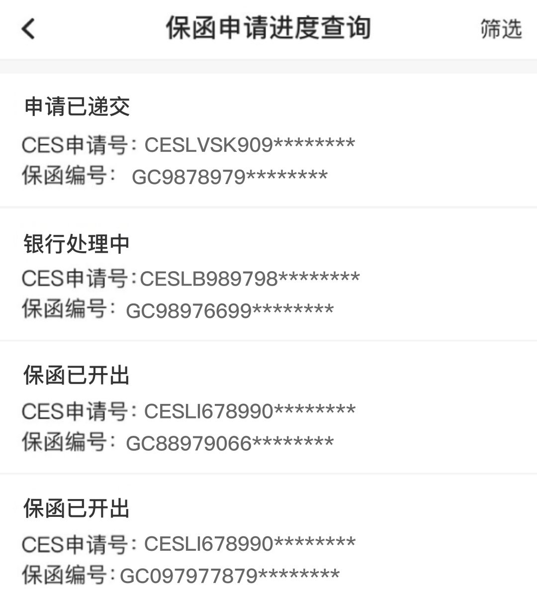 受益人查询、保函申请进度查询、详细信息查询、到期未撤销查询、快递单查询、保函通知