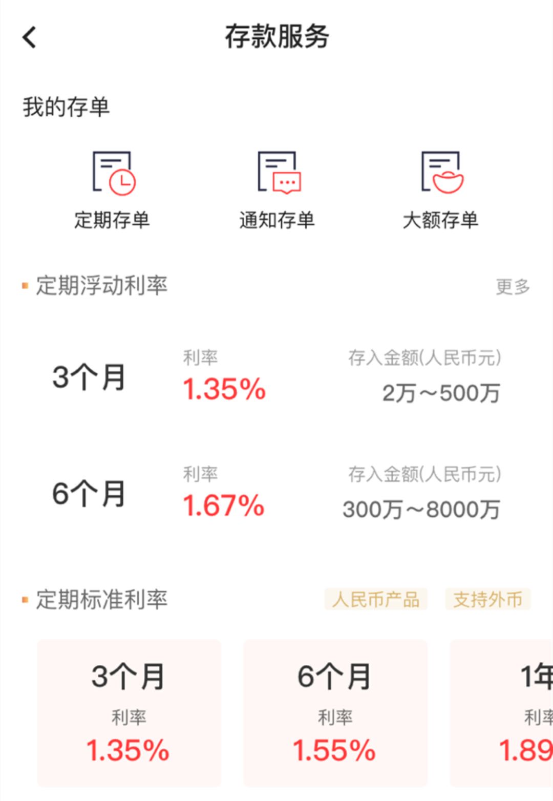 定期存款存入/支取、通知存款存入/查询、大额存单存入/支取、修改转息账号、支取利息