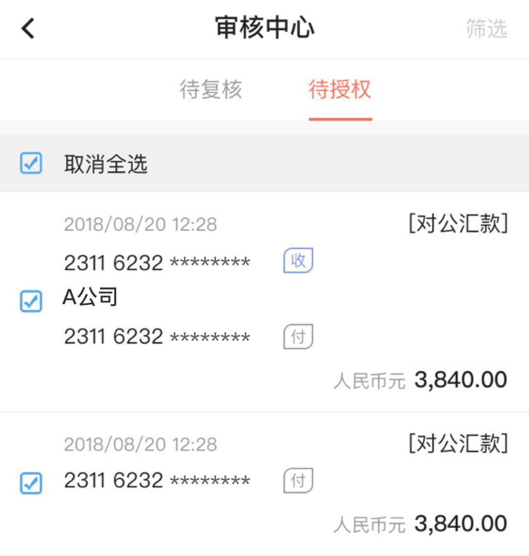 行内对公/对私转账、跨行对公/对私转账、定向转账、待修改业务提醒、跨服务审核中心、预约转账、收款人提醒