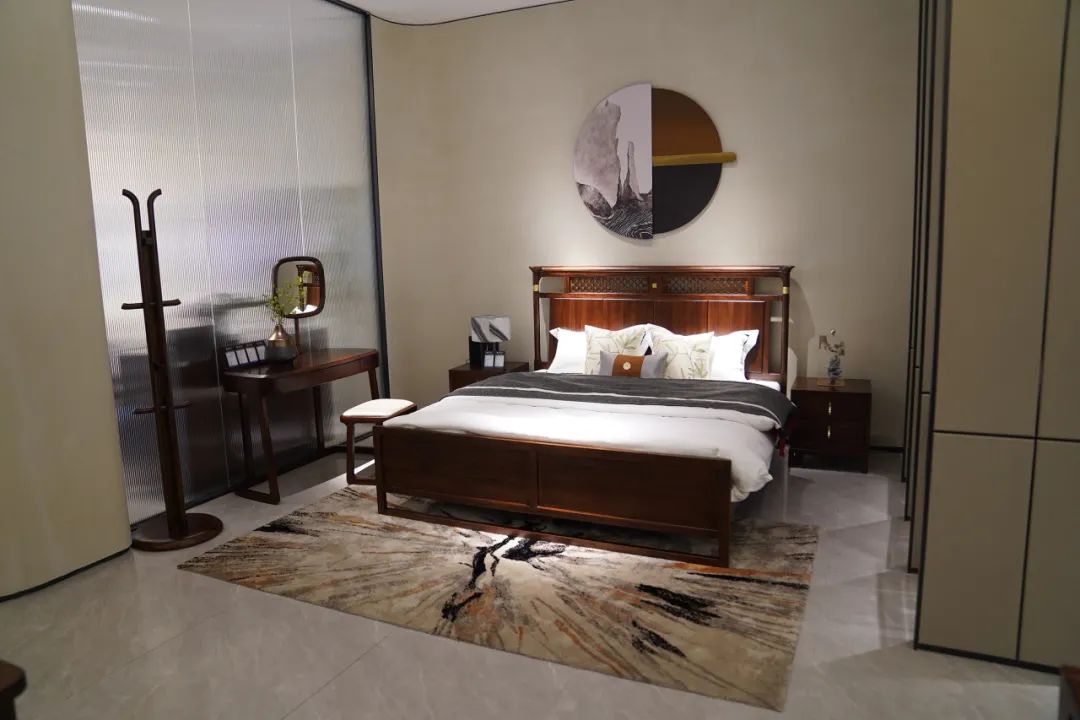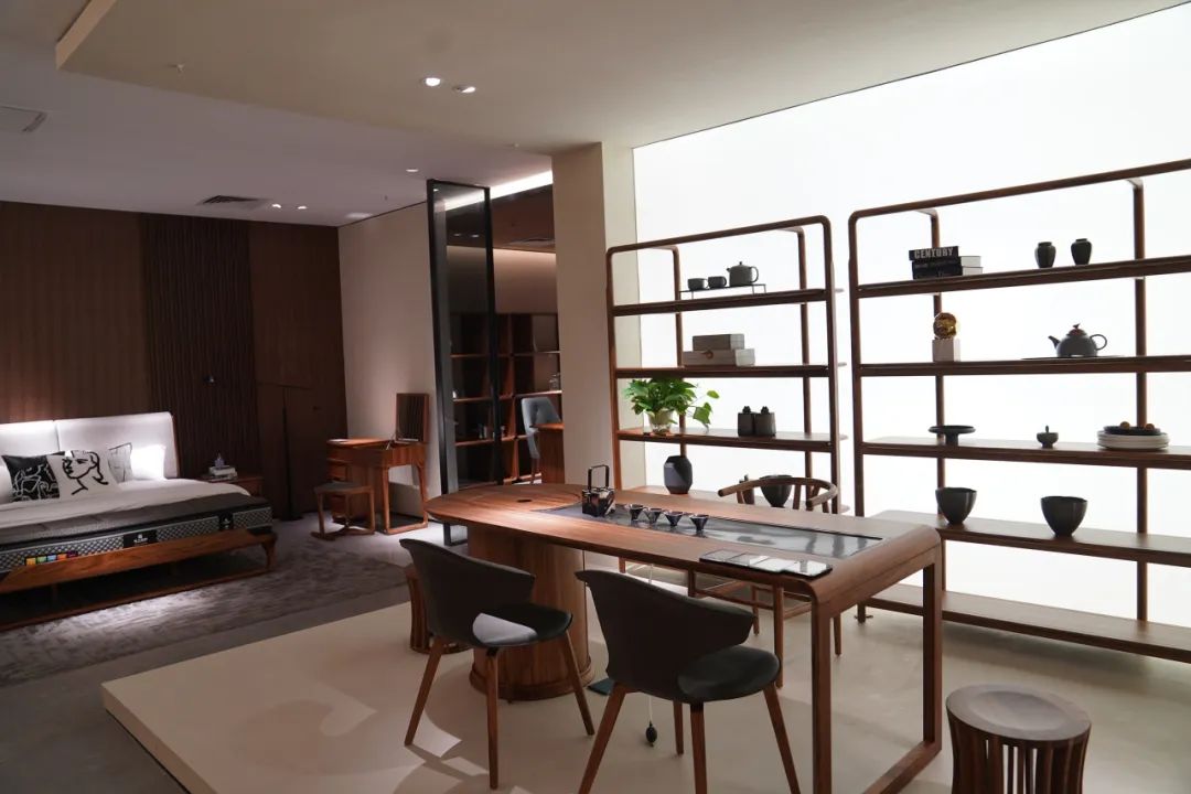 在众工家具的展厅,摆放着不少古色古香的实木套房家具,不同于刻板印象里红木家具的大众化、统一化的风格,这里的家具将传统和现代元素相结合,在现代家具浪潮中独树一帜,尽情展示源自于东方的传统艺术。