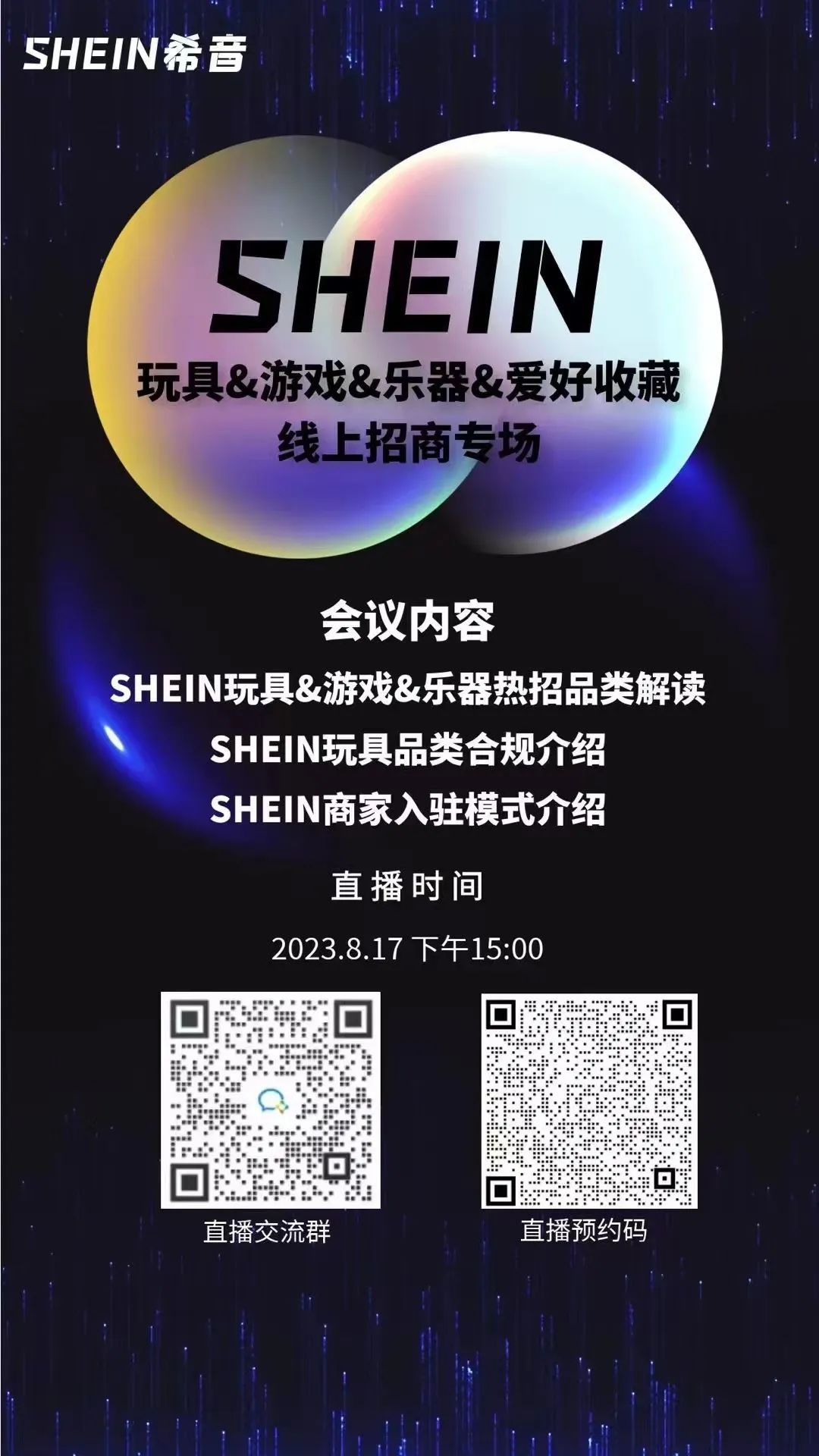 活动报名 | 今日下午SHEIN希音玩具等品类线上招商专场