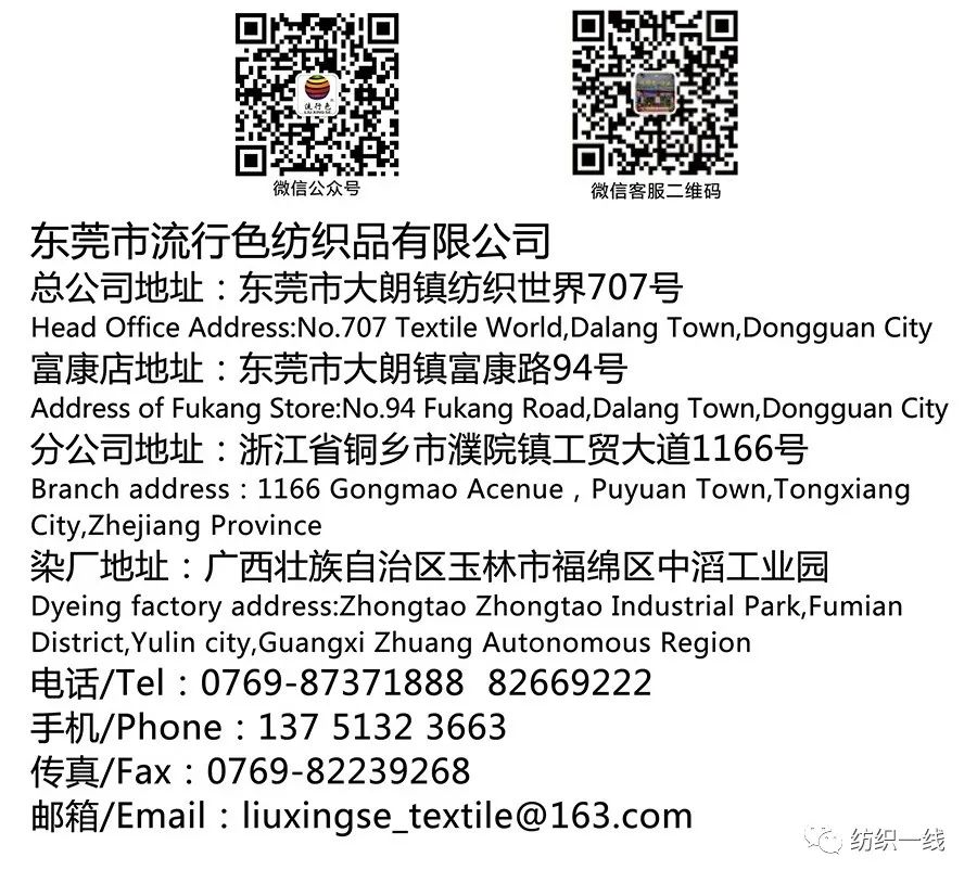 东莞市流行色纺织品有限公司是由一间染厂演变成一家前商店后工厂的纺织品原料生产,销售的综合型公司。凭着优良的产品品质、合理的价格以及完善快捷的服务,赢得了国内外客户的信赖,出口业务发展迅猛,一直以来公司采用严格的管理系统,灵活的经营理念,以制作工艺精湛,生产效率高速赢得广大客户的欢迎。公司秉承:勇于开拓、不断进取,任何事从细节做起的精神!实行“质量为本,信誉第一”的原则,紧跟国内外市场的发展和需求,乘着时代的浪潮,迅速壮大。热烈欢迎各界人士光临,共创纺织行业美好的未来!