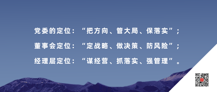 我们在前面的文章中提到过判断深度融合的标准之一就是要看基层党组织有没有充分发挥“把方向、管大局、保落实”的作用,其中的关键点是要妥善处理好党委、董事会、经理层之间的定位与关系: