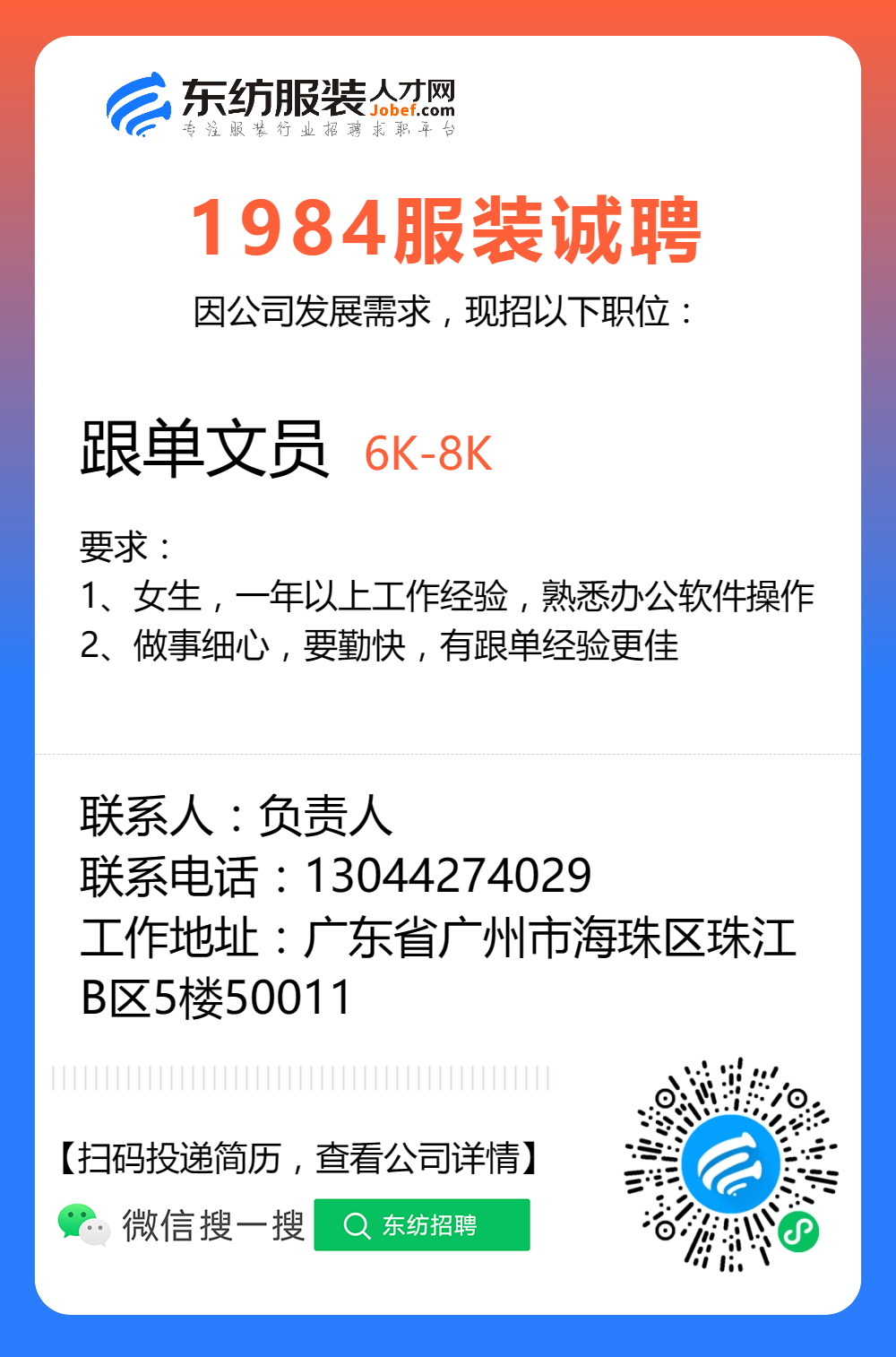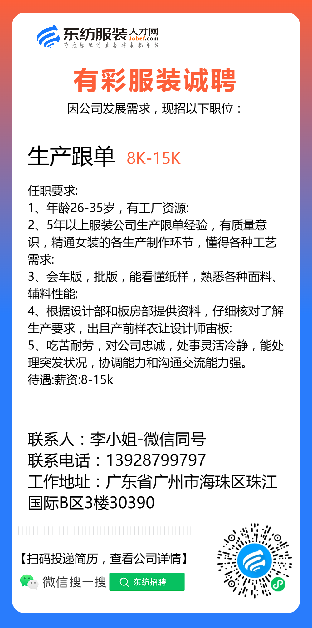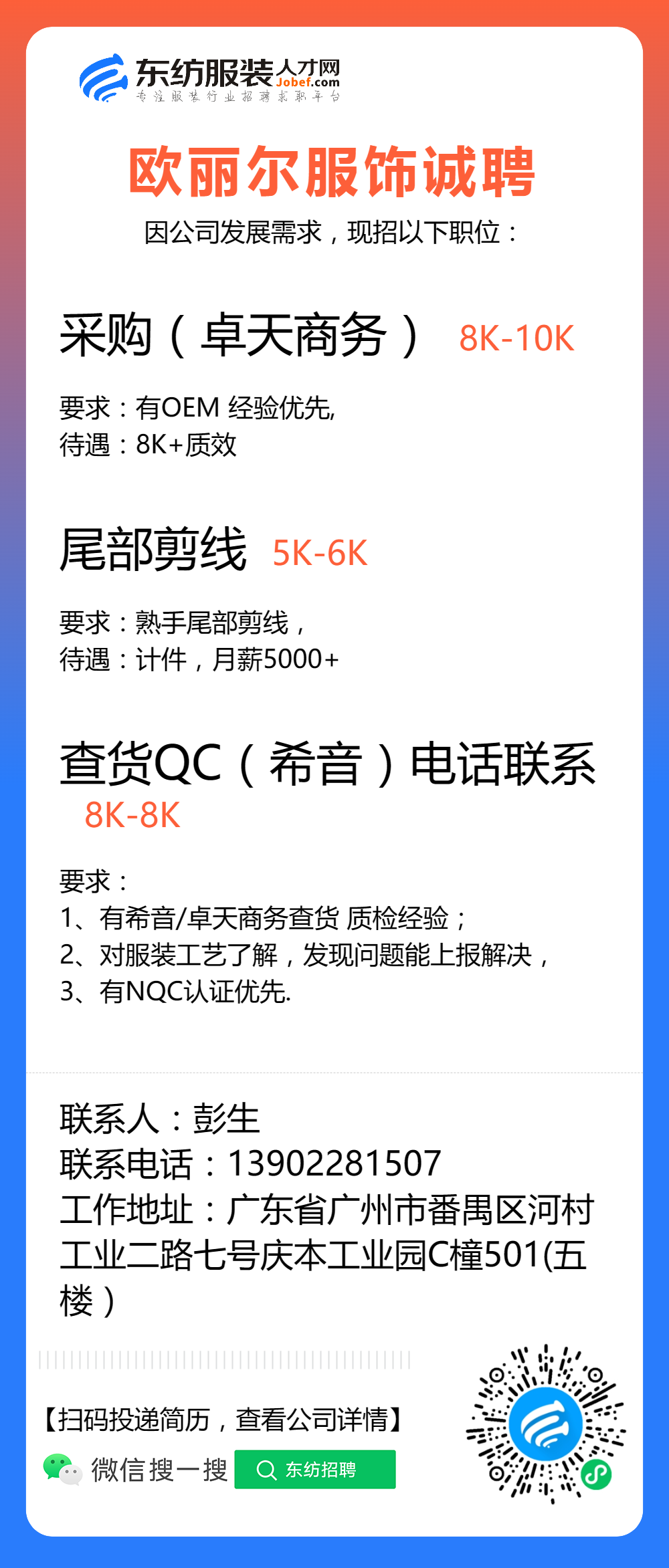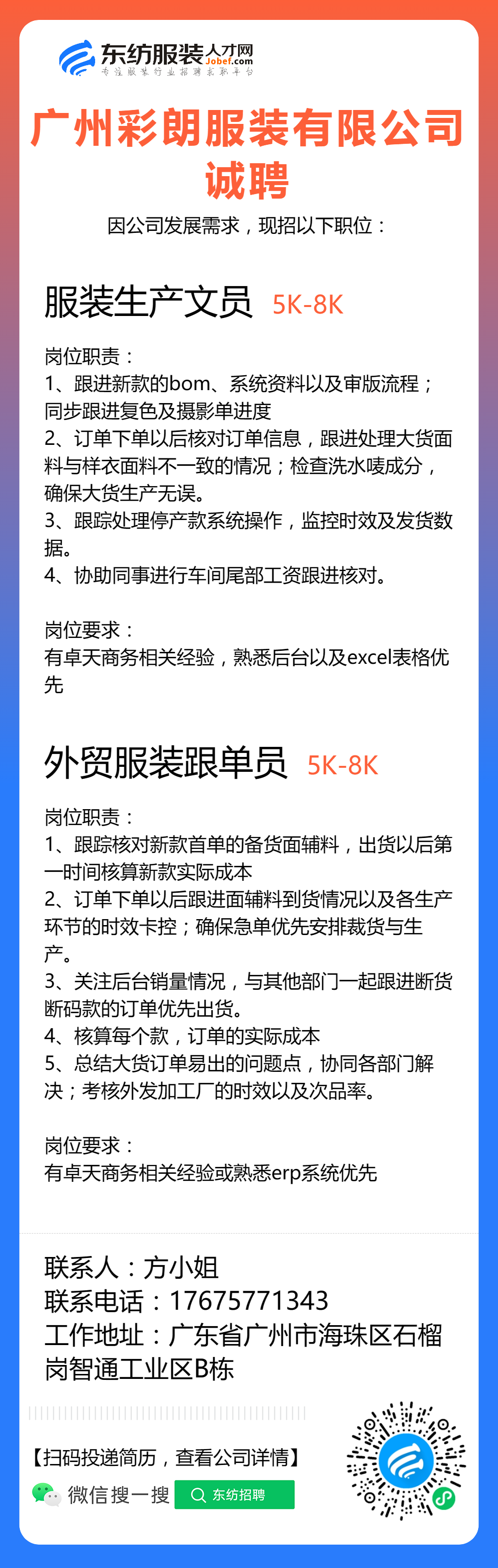 服装招聘·工厂类丨8. 17 号,跟单、采购、车位、裁床、尾部……