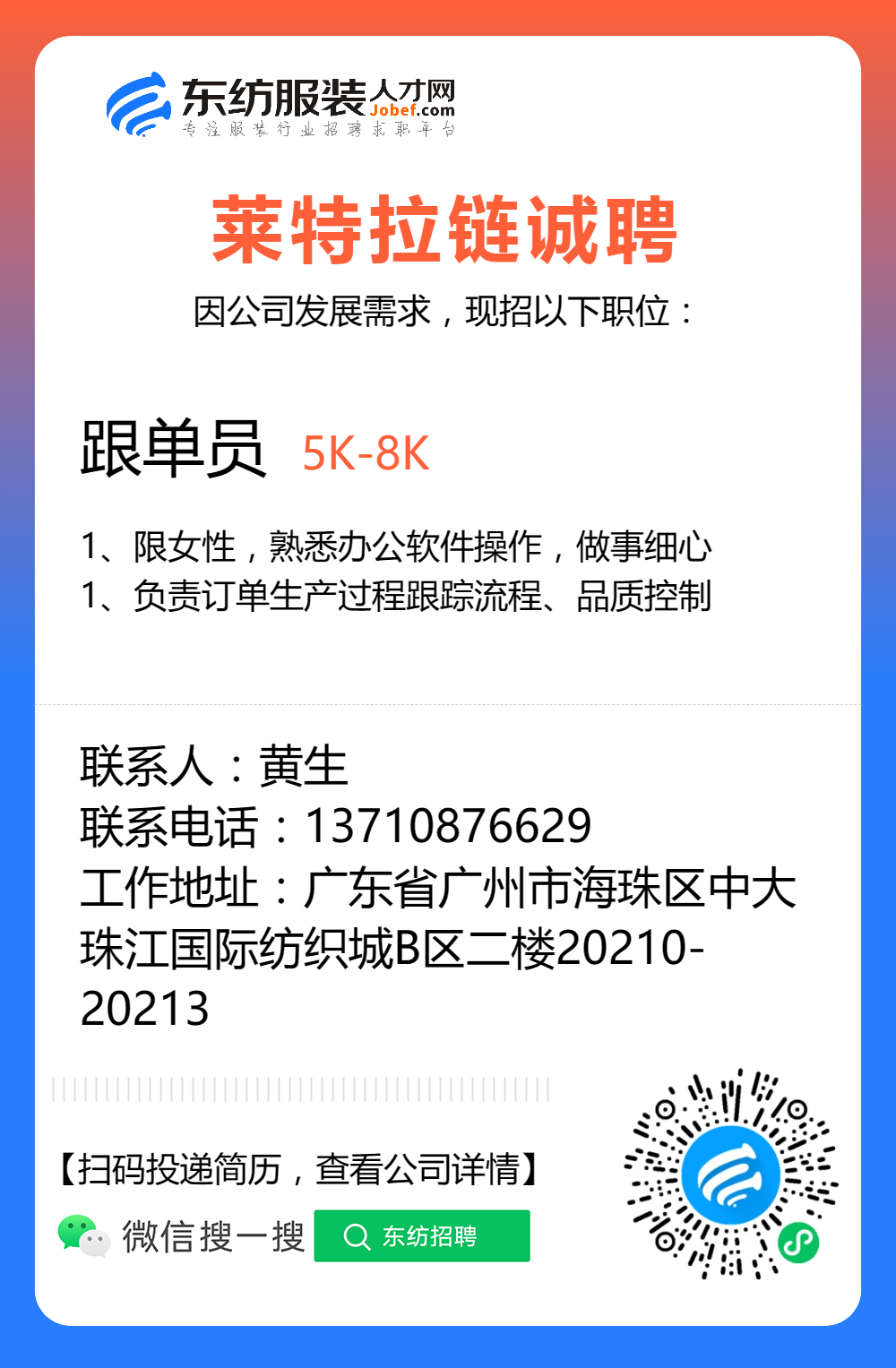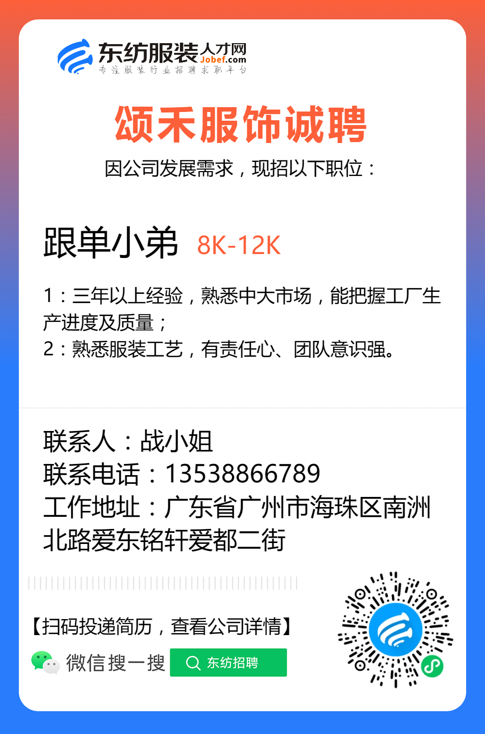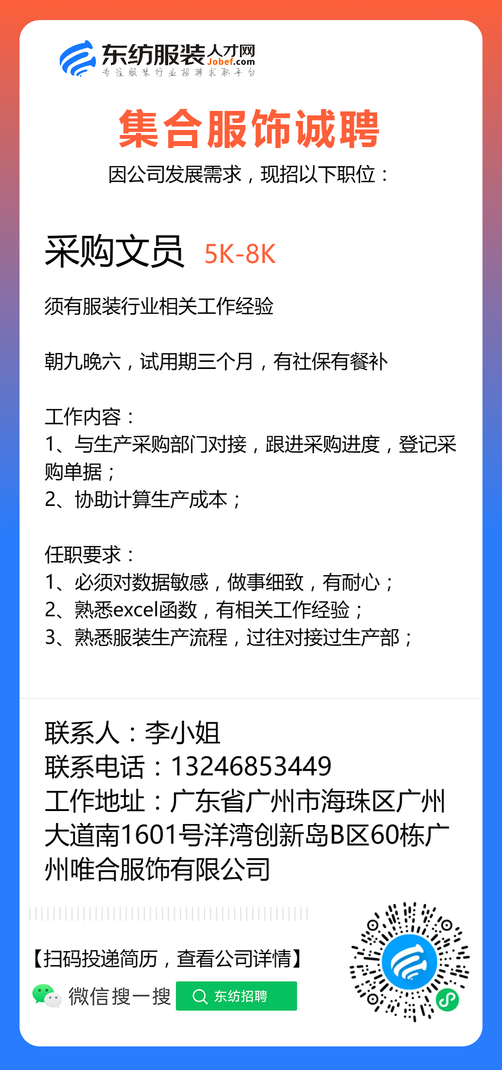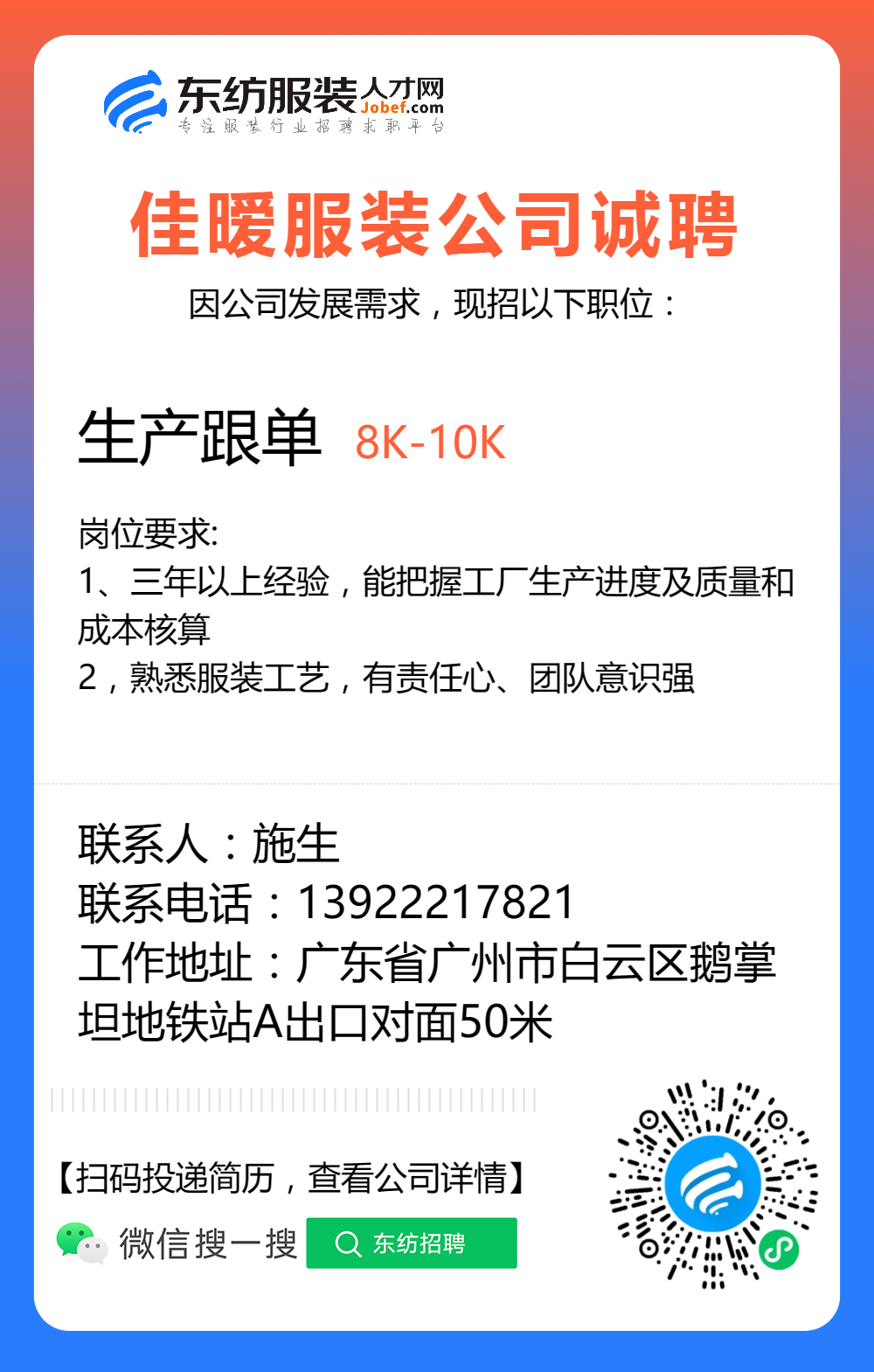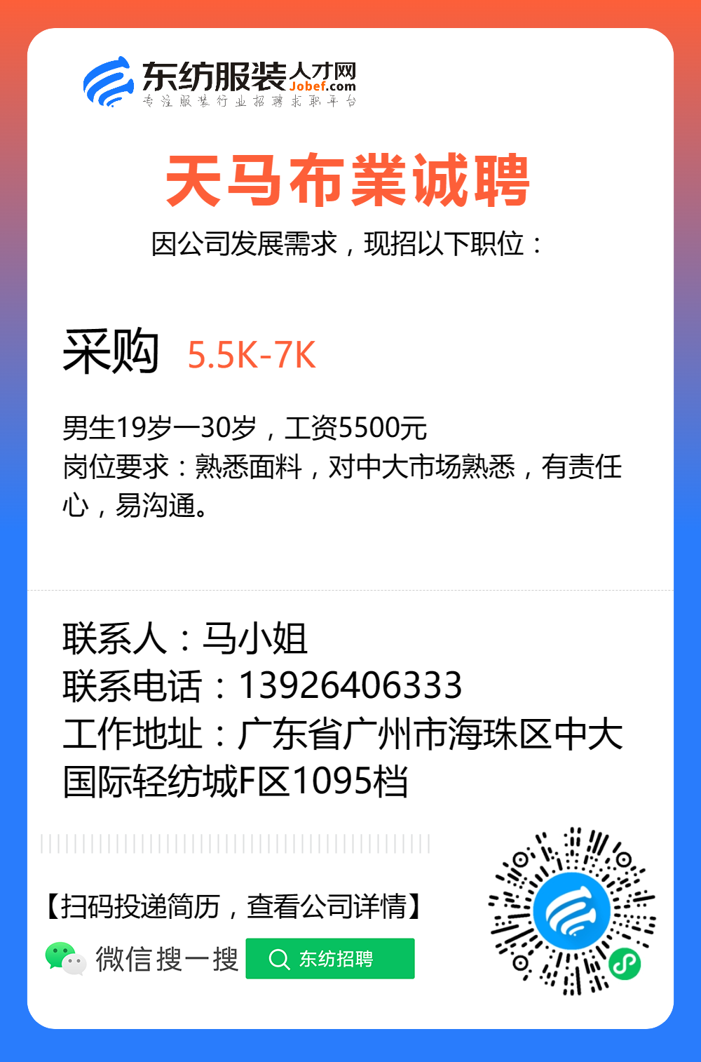 服装招聘·工厂类丨8. 17 号,跟单、采购、车位、裁床、尾部……