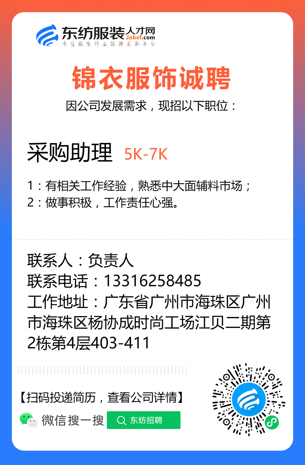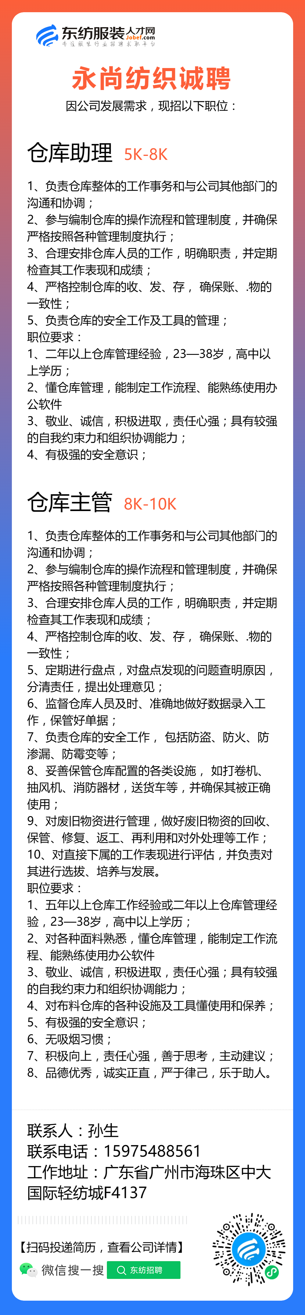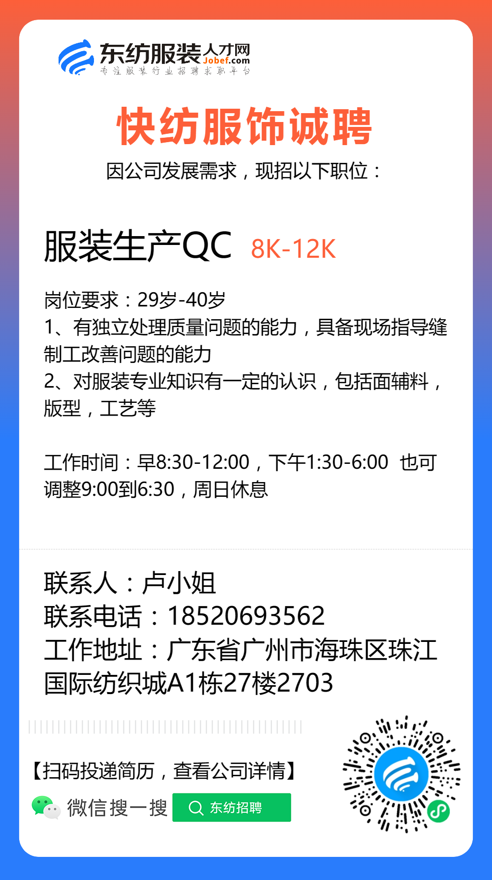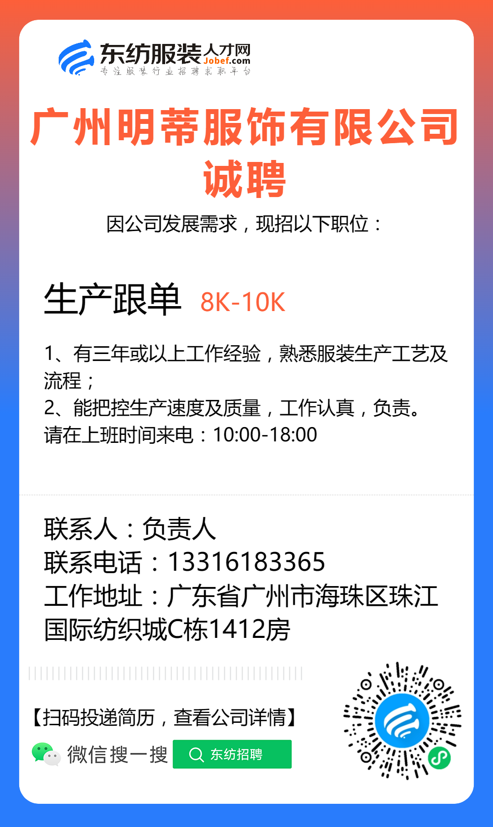 服装招聘·工厂类丨8. 17 号,跟单、采购、车位、裁床、尾部……