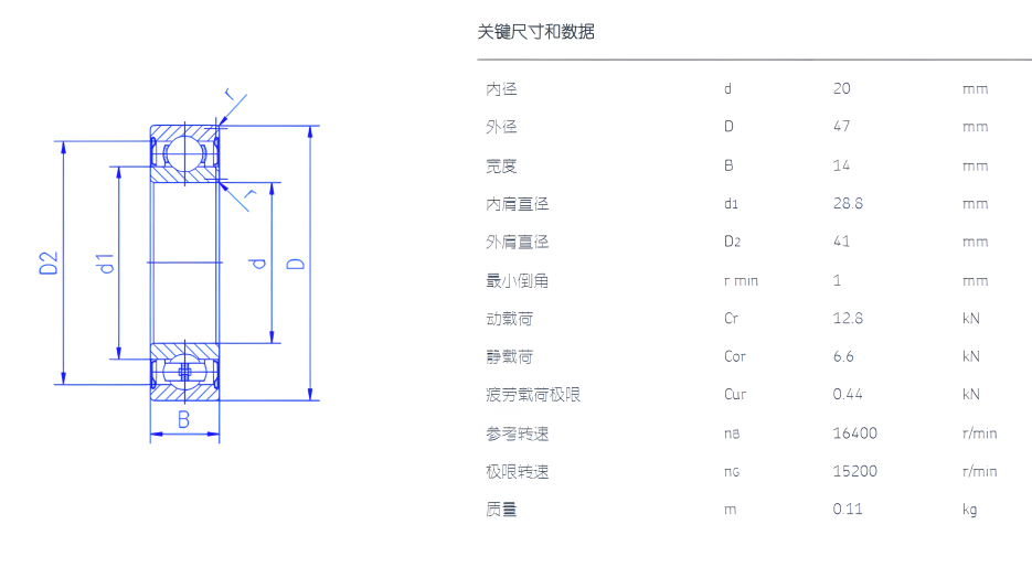 6204轴承,内径:20mm,外径:47 mm,厚度:14 mm,为深沟球轴承。
