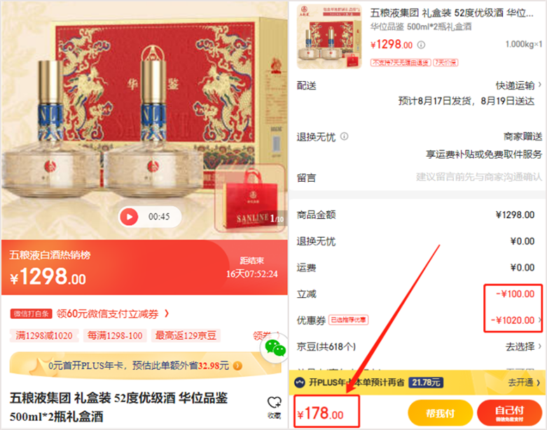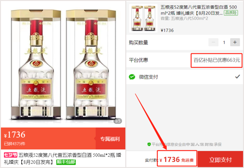 现在小妹找到拼多多百亿补贴价,两瓶只要1736元,直降1000+!