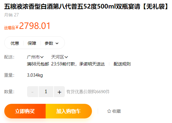 五粮液第八代普5现在多少钱??宝双瓶最新价格:2798元