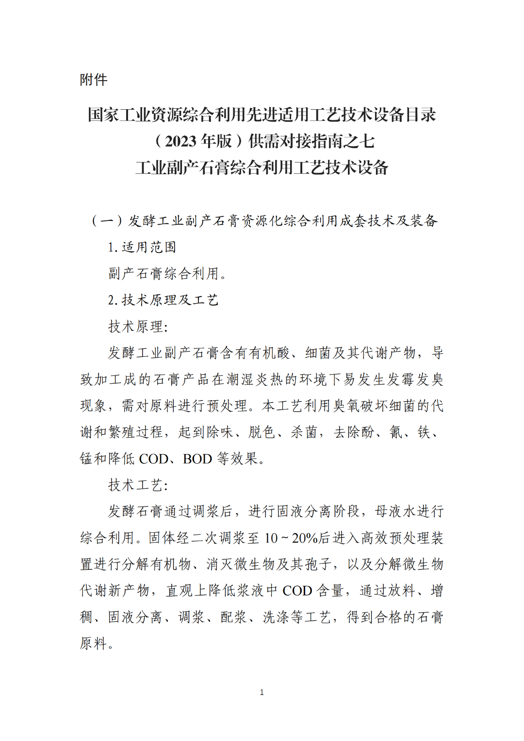 国家工业资源综合利用先进适用工艺技术设备目录(2023年版)供需对接指南之七:工业副产石膏综合利用工艺技术设备