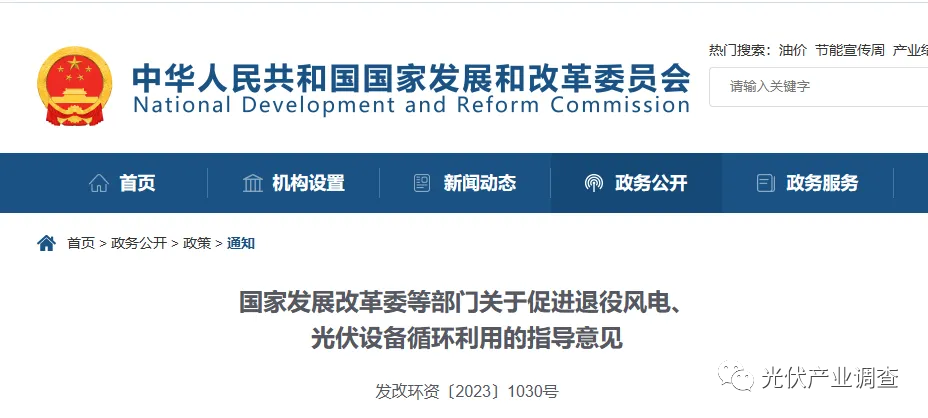 近日,国家发展改革委等部门发布关于促进退役风电、光伏设备循环利用的指导意见。
