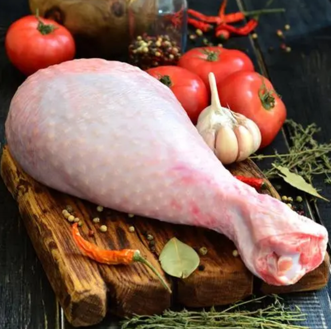 火鸡腿鲜嫩爽口,野味极浓,瘦肉率高,蛋白质含量丰富,胆固醇低、脂肪少,并含有丰富的铁、锌、磷、钾及维生素B,具有戒躁减压、保护心脏、滋补养虚等功效。