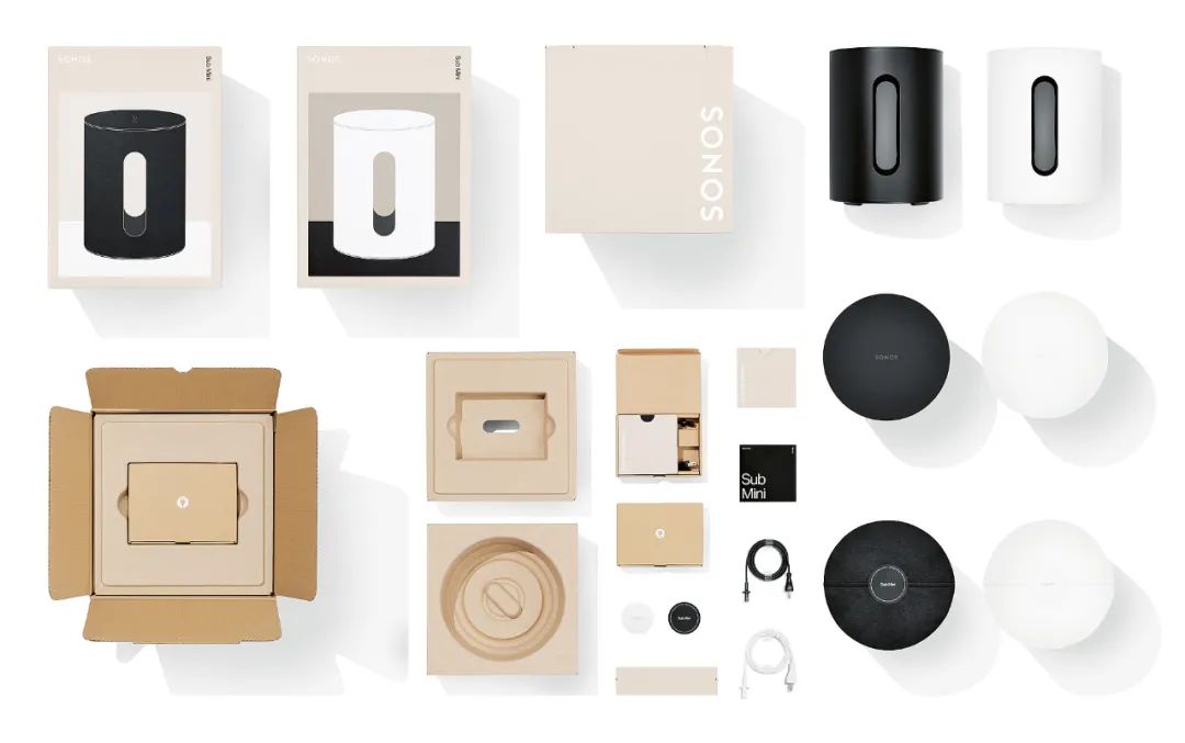 这种高度成功的包装设计的功能方面是明确的:产品需要有效的保护,包装的形式必须满足物流要求。同时,包装也是消费者的第一个接触点之一,因此它应该唤起一种欲望感,并一眼提供他们所需的所有信息。这些参数并不新鲜。然而,近年来,可持续性也成为一个越来越重要的因素。对所用材料的全面分析也是Sonos Sub Mini和Sonos Ray包装设计的重点。