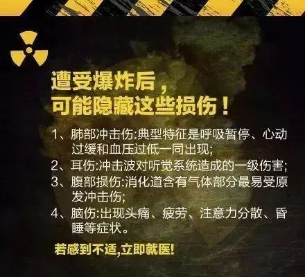 1.离爆炸处相对远的位置因冲击波导致的划伤、摔伤、出血。