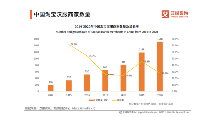据不完全统计当前汉服商家数量已经超过1500家,未来汉服市场依然光明。