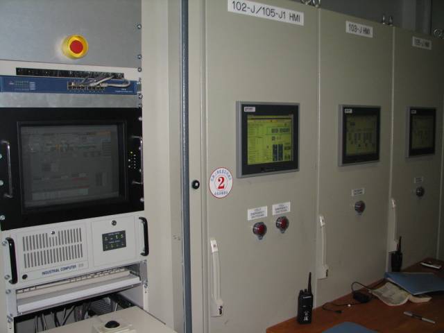 化肥二部主装置共有压缩机组6台:原料气压缩机组(102J/JT)、合成气压缩机组(103J/JT)、氨冷冻压缩机组(102J/JT)、氨升压机(105J1/JAM)、二氧化碳压缩机组(302J/JT)、工艺空气压缩机机组(101J/JGT)。其中工艺空气压缩机组101J/JGT)原动机为燃气轮机,机组控制采用GE公司Speedtronic Mark VI控制系统。其它机组均采用Woodward公司生产的MicroNet TMR控制系统,共有4套(105J1为电机驱动,与102J/JT共用一套)。