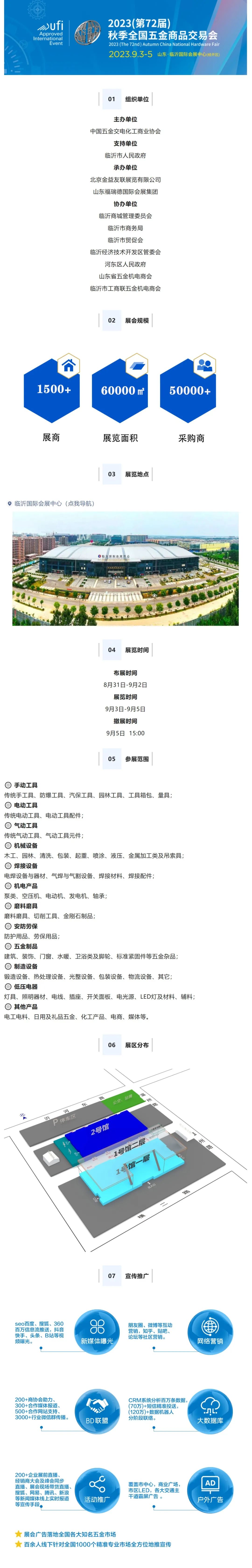 三年疫情过后中国五金行业正处于崭新的发展阶段,企业更加重视行业推广、对行业展会的甄选要求越来越高。本届秋季全国五金商品交易会主要数据指标将创秋交会定点临沂六年展会新高,显示出疫情后行业及企业复苏的迫切愿望与积极谋划。