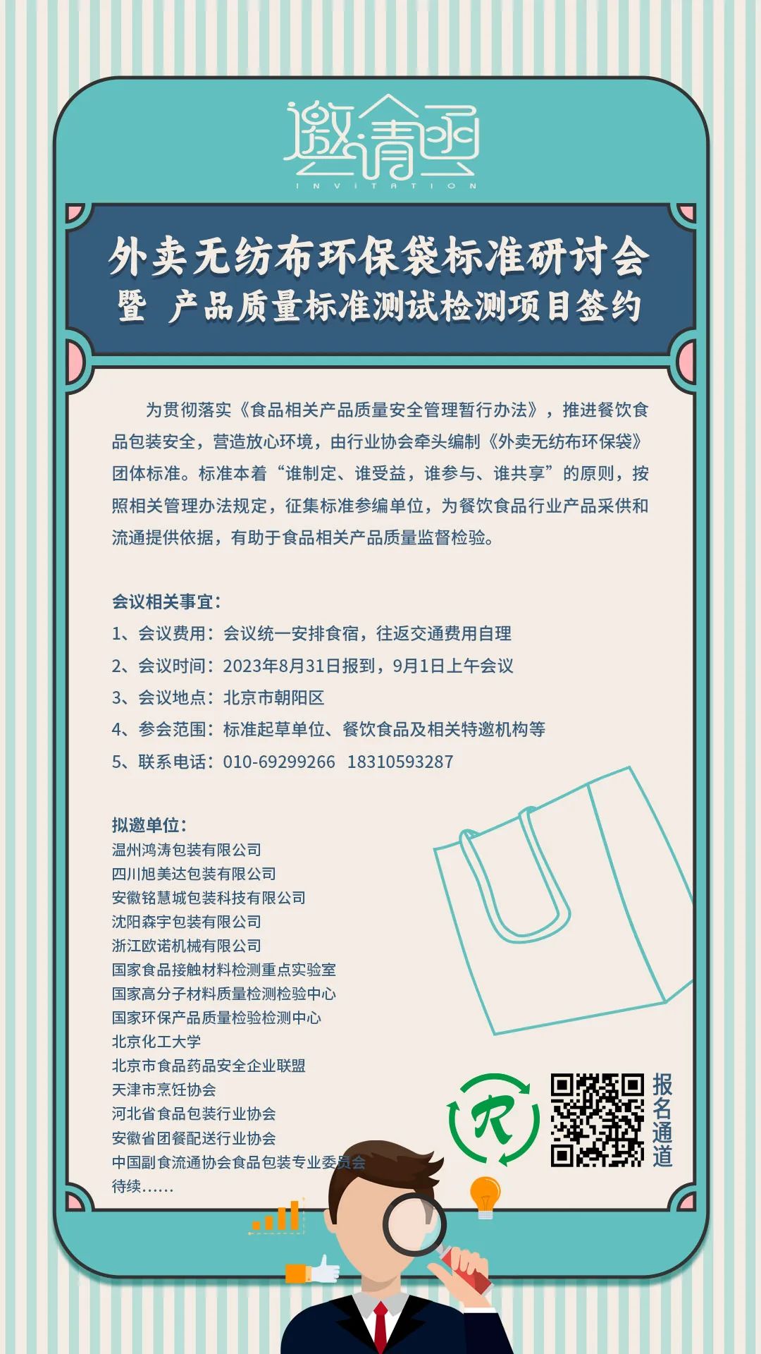 尽管外卖无纺布袋风靡中国外卖食品包装市场,时至今日无论是国外还是国内,在外卖无纺布袋产品市场及行业技术标准仍属空缺状态。目前国内外卖无纺布袋基本采用的是纺织行业FZ/T 64035-2014非织造布及其复合材料为主要材料加工而成的购物袋,标准规定了非织造布购物袋的要求、试验方法、检测规则等,产品检测方面是以纺织品的色牢度、化学纤维、织物及其制品的接缝拉伸性能为主要内容。其规定与当前国内外卖无纺布袋市场流通产品存在标准内容差异,缺失食品安全国家标准的食品接触用塑料树脂、食品接触用塑料材料及制品、食品接触材料及制品添加剂的使用标准,在检测规则、内在质量的判定、印刷油墨安全、限用化学物质的测定及迁移、国家低碳节能循环等方面缺少标准依据。标准的缺失使得外卖无纺布袋行业难以规范,厂家无标准可依,产品质量参差不齐,终端消费者也无评估标准。基于此由中国副食流通协会食品包装专业委员会、河北省食品包装行业协会牵头温州鸿涛包装有限公司、四川旭美达包装有限公司、安徽铭慧城包装科技有限公司、沈阳森宇包装有限公司、浙江欧诺机械有限公司等国内外卖无纺布袋行业领军企业及行业技术、检测机构开展《外卖无纺布环保袋》团体标准的制定工作,目前该项团体标准征求意见过程中,9月1日将在北京召开标准研讨会。