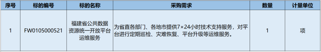 福建某项目开放平台运维服务采购