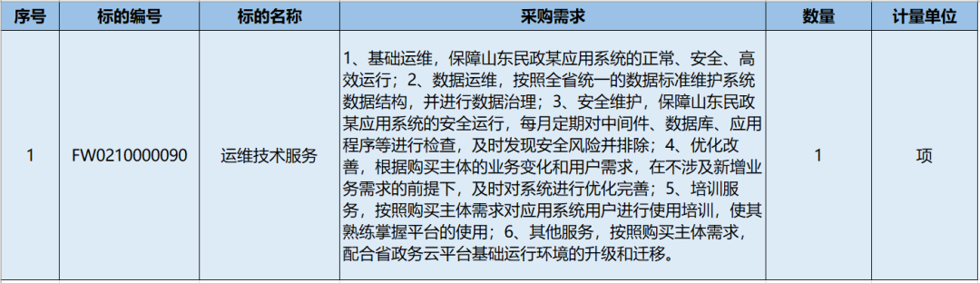 山东民政某系统运维服务项目采购