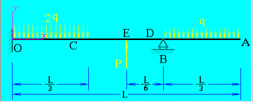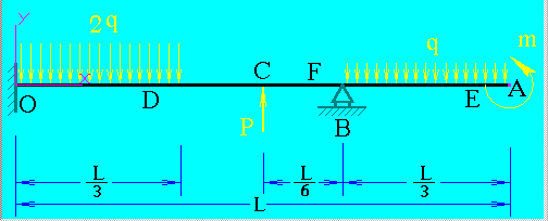 固定简支外伸梁(均布力,集中力,力偶矩)挠曲线