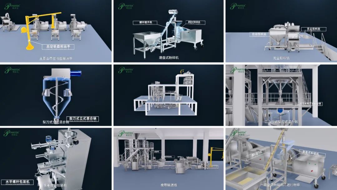 帕泰克公司以卓越的工程实力和先进技术而闻名。而三维动画在呈现高效配比混合粉碎包装系统时,能够以最高水平的精确性还原每个组件的细节。这种精确性不仅展示了系统的工程深度,更彰显了帕泰克在技术领域的引领地位。