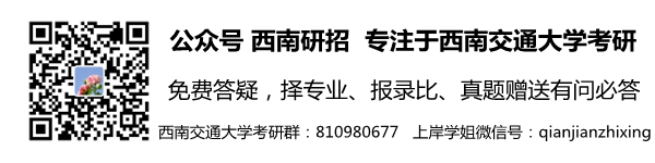 为西南交通大学考研学子提供一个交流的平台,但凡我能够找到定会无偿且毫无保留的提供给西南交大考研人,路遥知马力日久见人心,坚持且方法对路,在考研路上秉持初心方得始终,我希望有我的地方就会有星光,做好一个西南交通大学考研领航人。西南交通大学考研群:810980677 上岸学姐微信号:qianjinzhixing