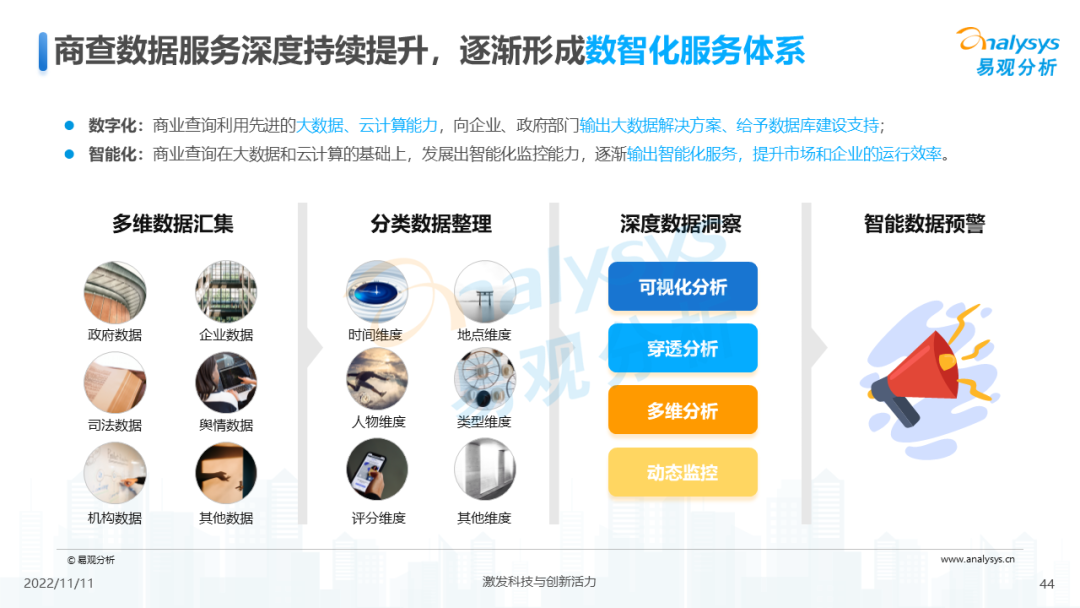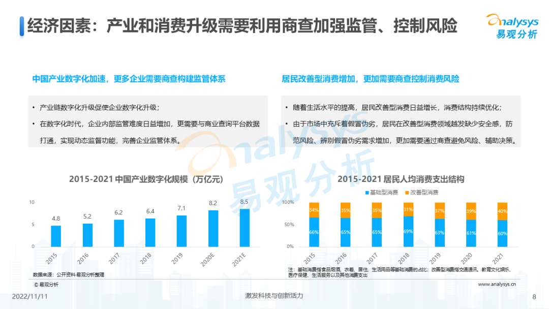 从商查行业发展趋势看,用户需求的变化促进商查的价值从工具价值向服务价值、经济价值、社会价值延展,平台定位也需逐渐迈进“服务业+数智化”的商业综合服务阶段。商查服务广度向服务业细分场景拓展,形成综合服务生态。商查数据服务深度持续提升,逐渐形成数智化服务体系。商查将推动传统产业向数智化方向转型升级,助力数字经济。同时,商查将持续支持社会信用体系构建,辅助建设全国统一大市场。