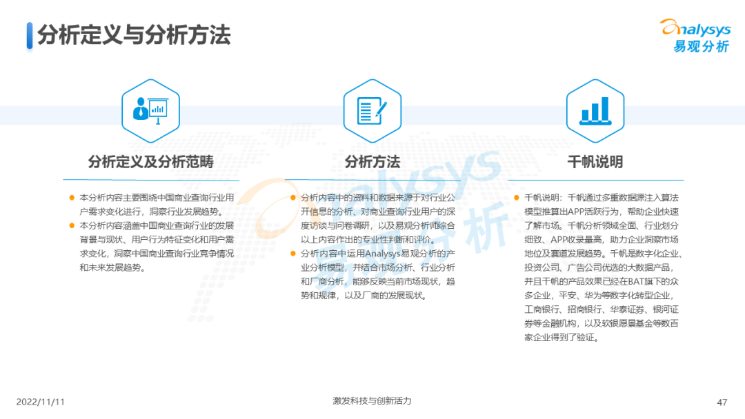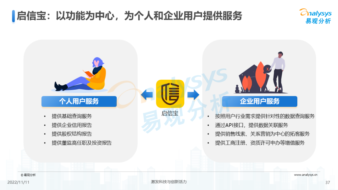 而企查查、启信宝等其他平台主要聚焦自身功能,以功能为中心提供查询、分析等解决当前用户需求的服务。