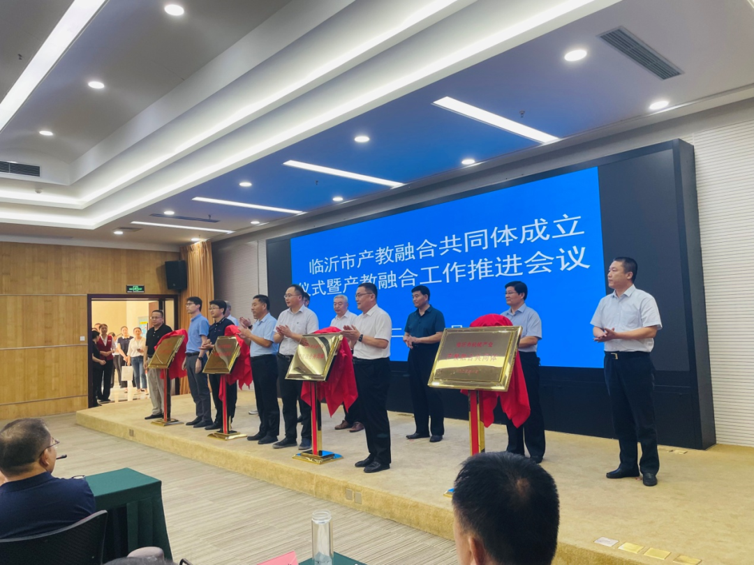 会上,临沂市农业学校党委副书记孙瑞金和山东钢铁集团永锋临港有限公司人力资源部部长卞博共同为临沂市冶金产业产教融合共同体揭牌。莒南县人民政府副县长马啸霄出席揭牌仪式。