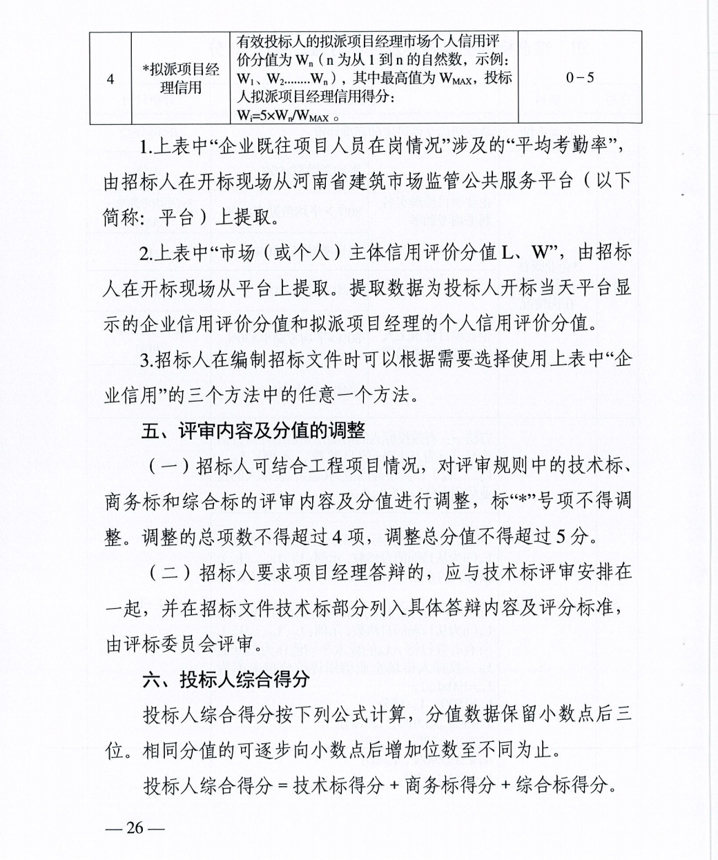 设置企业和项目经理信用要求时,应统一使用河南省建筑市场信用评价分值,不得另行设置奖项加分项或扣分项以及不良行为扣分项。