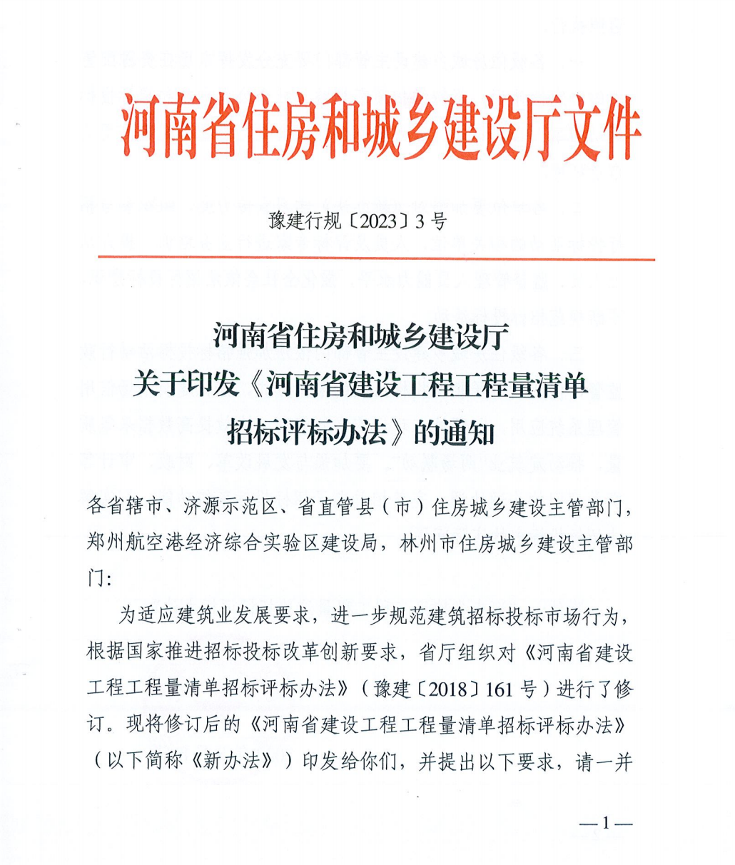 8月14日,河南省住建厅印发《河南省建设工程工程量清单招标评标办法》,自2023年12月1日起实施。