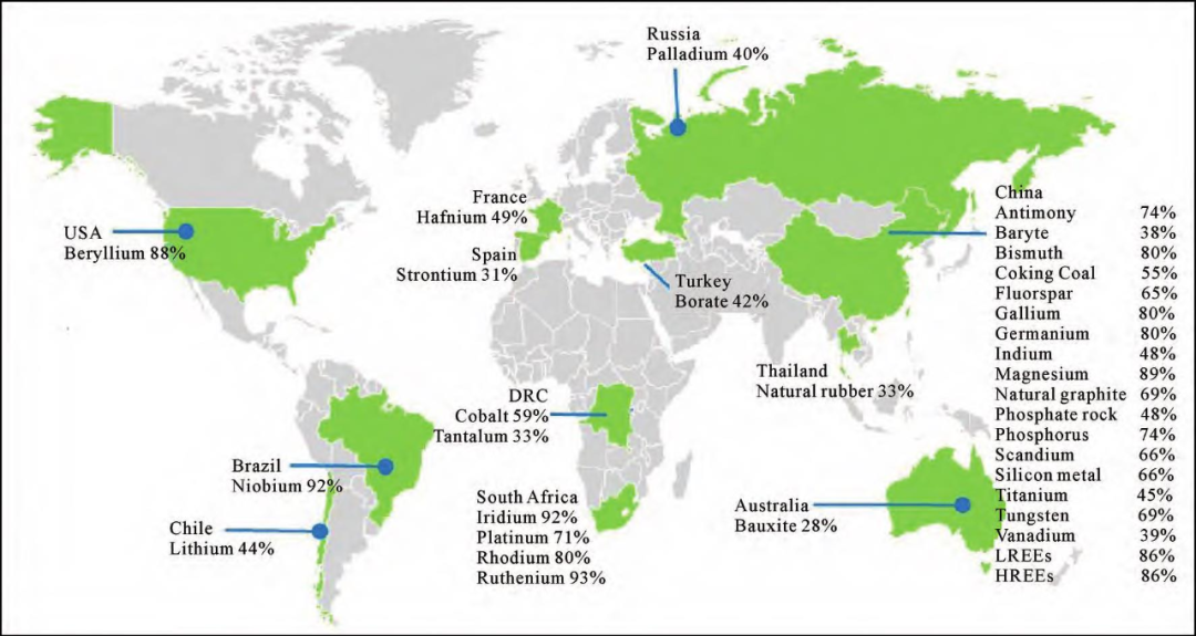 图3 全球主要战略性矿产生产分布图
