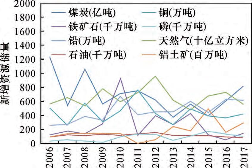 图7 中国主要矿产新增资源储量
