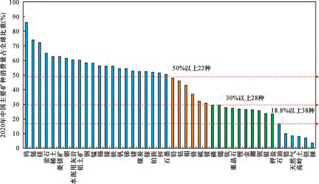 图5 2020年中国主要矿产消费量占全球比例