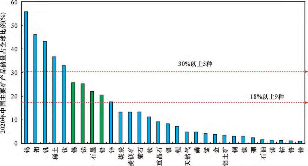 图4 2020年中国主要矿产储量占全球比例