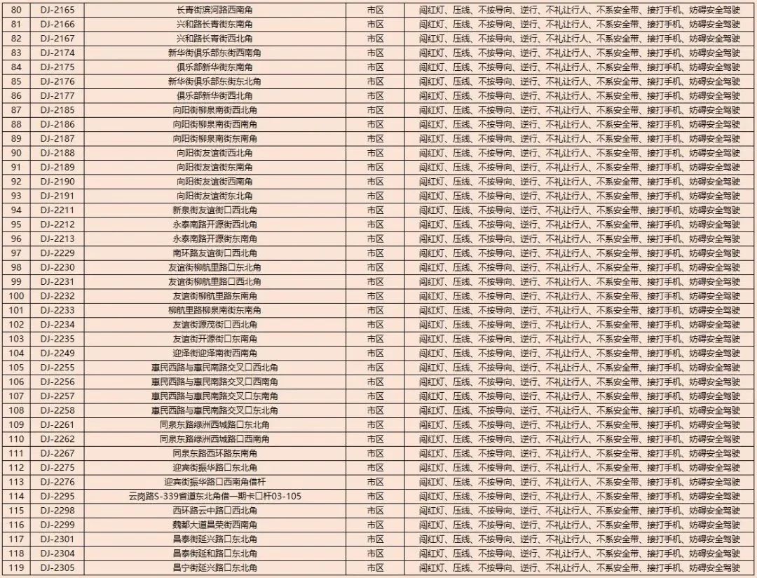 新增的595处交通违法行为