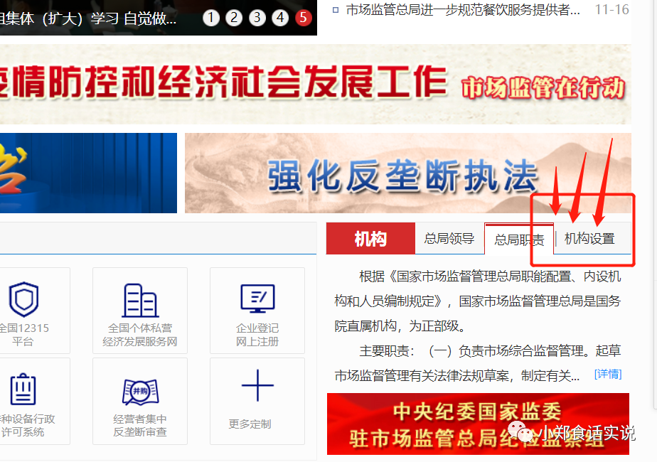 第二步:在国家市场监管总局网站界面点击机构设置