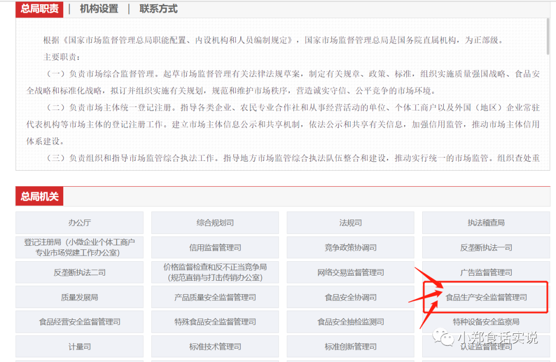 第三步:在机构设置界面点击食品生产安全监督管理司