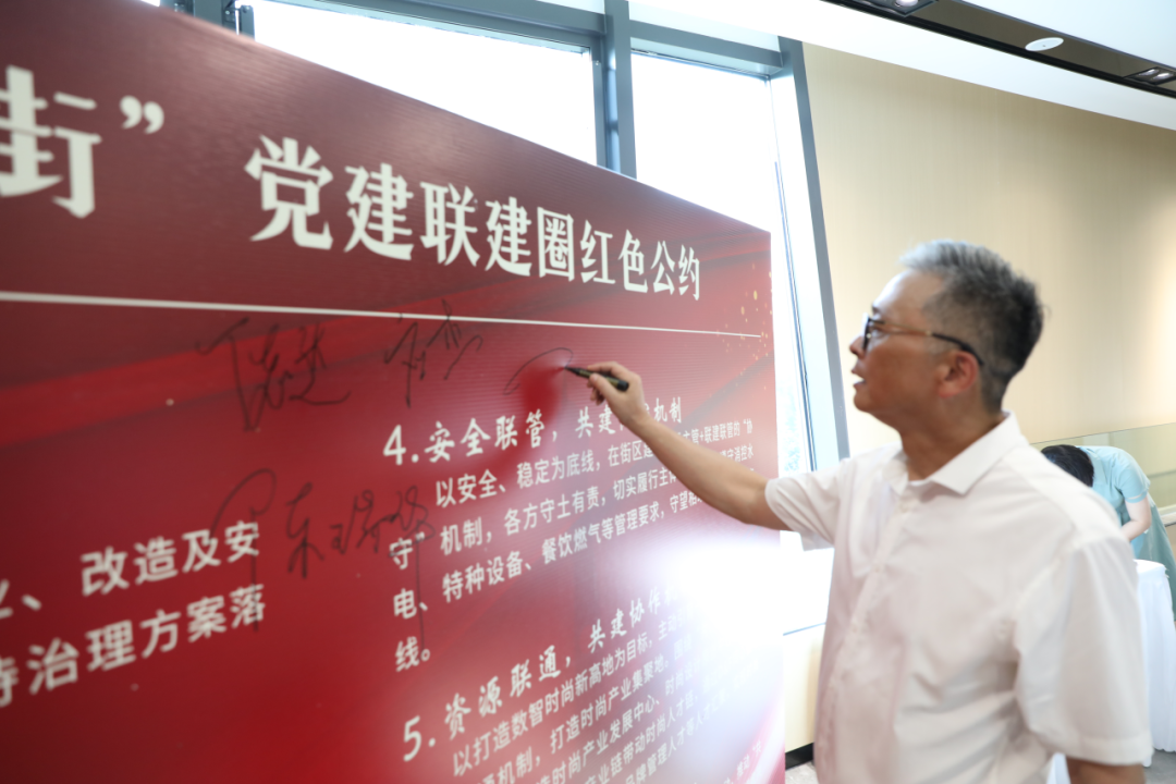 组织党建联建成员单位签订“中国服装第一街”红色公约。
