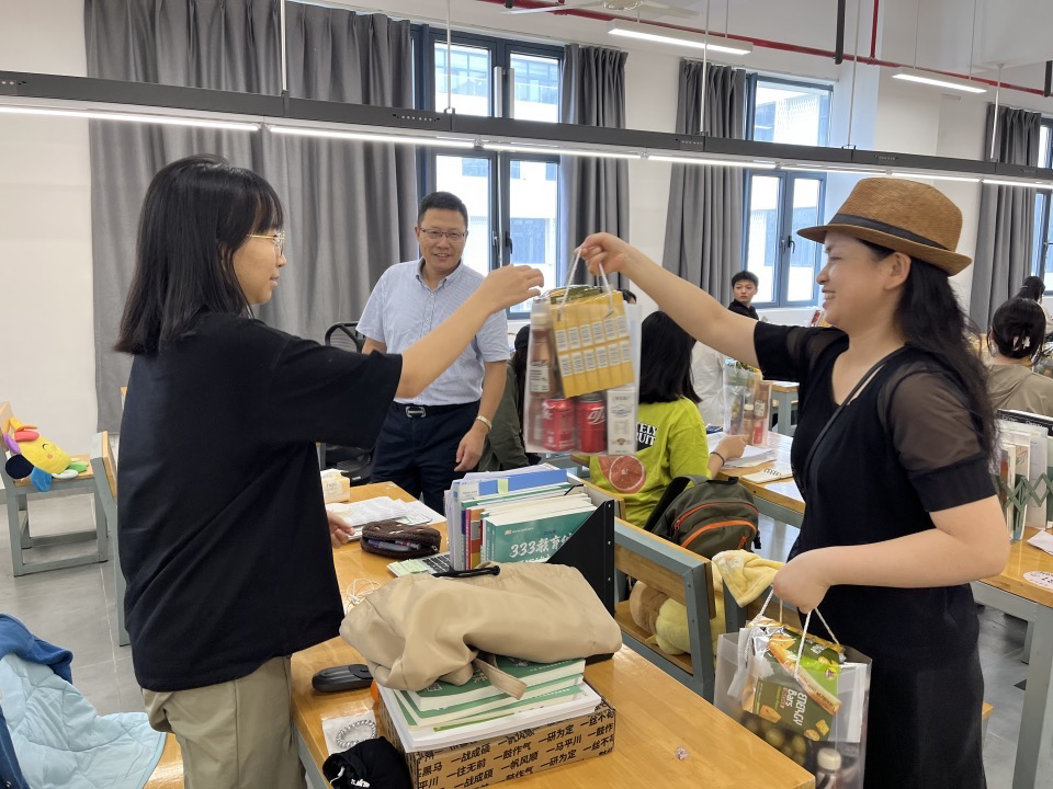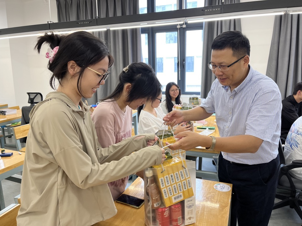 为鼓励我院考研学子假期集中精力复习,坚定考研信念,保持学习热情,8月17日下午,服装学院党委书记熊杰、副院长须秋洁、党委副书记胡永青一行来到学院7-326考研教室走访慰问暑期留校考研学生,并为所有在校备考的学生送去考研“加油包”,内含牛奶、咖啡、可乐、水果礼盒、奶酪棒、滴眼液等,给奋战在炎炎夏日的“服娃”送上一份清凉的关怀。