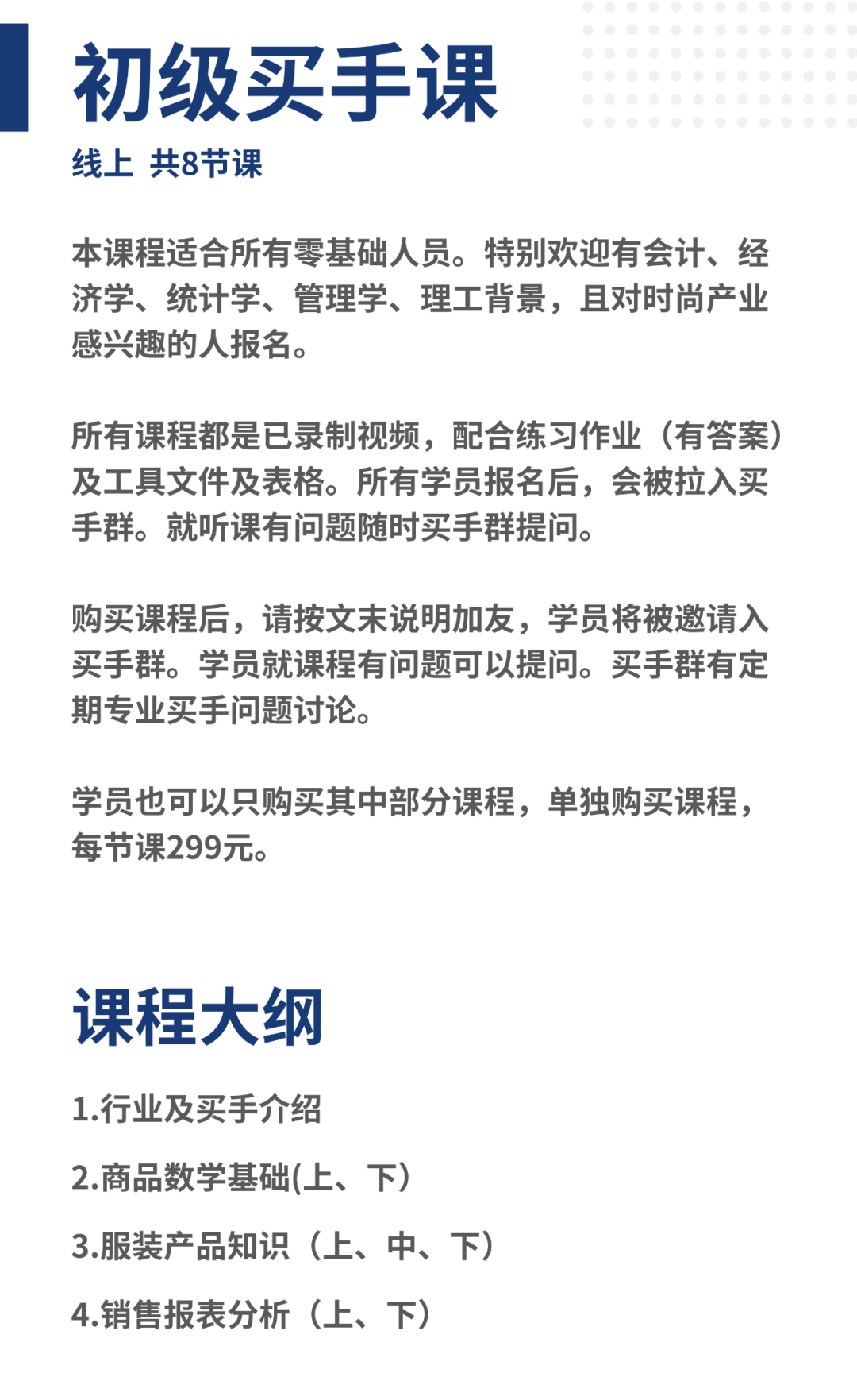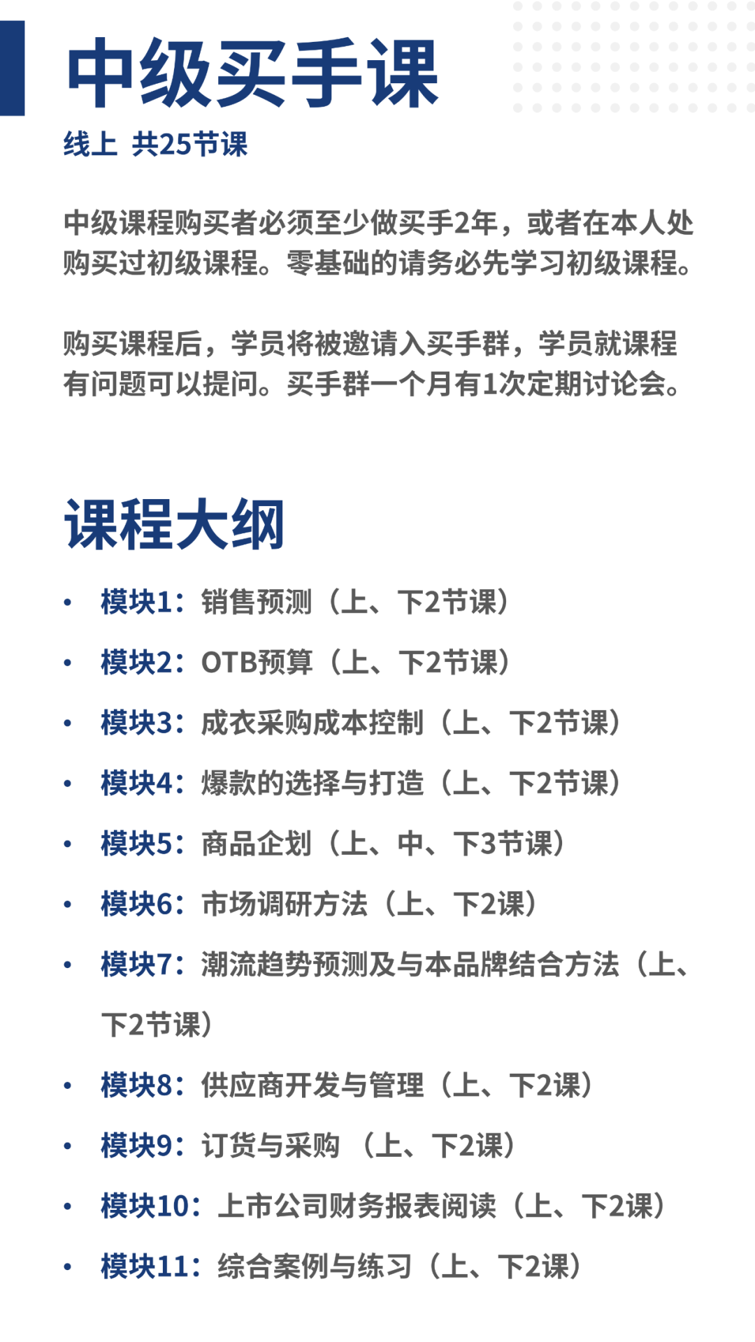 买手课2.0版 | 服装买手初中级线上课(可试看、可单买、可回放、可分期付款)