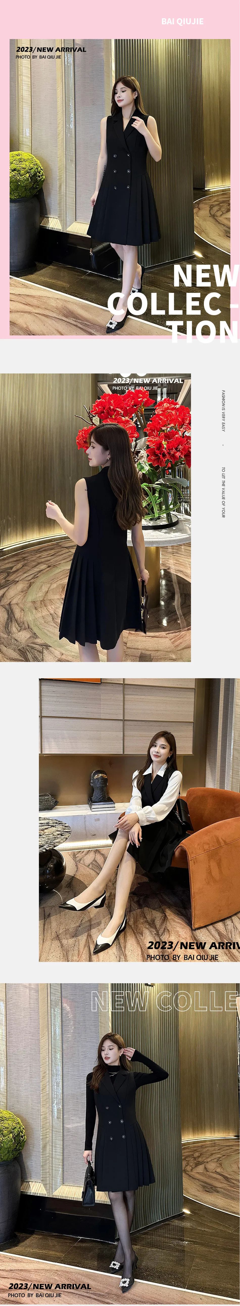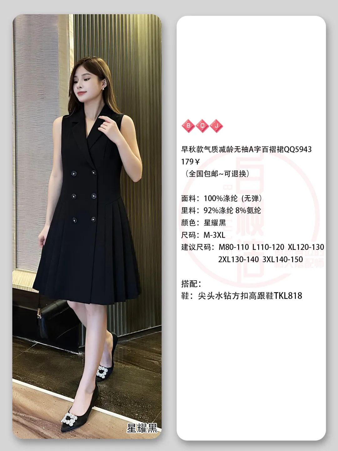 早秋款气质减龄无袖A字百褶裙QQ5943