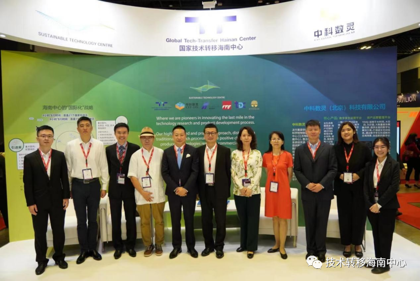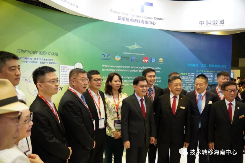 图 2 海南中心副主任吴翱与新加坡合作伙伴在海南中心展区合影留念