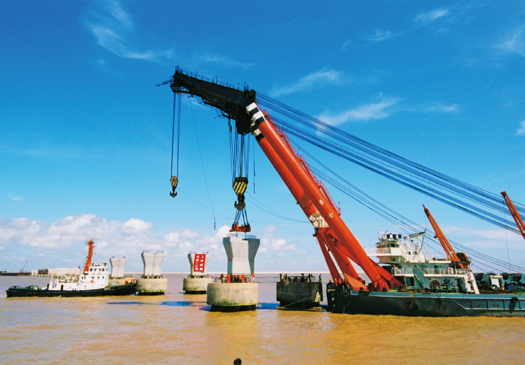 图4 来源 http://news.sina.com.cn/o/2003-09-04/1422691198s.shtml,“东海大桥二标上部结构施工拉开序幕 首根墩柱今就位”