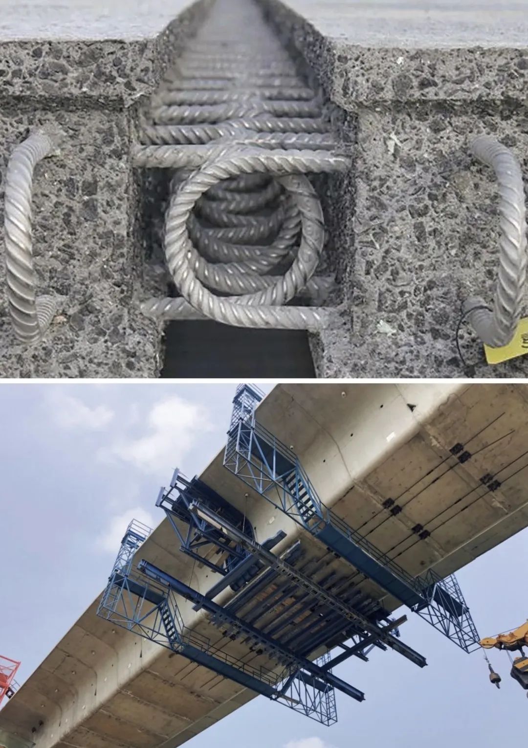 图2 湿接缝示意图,上:桥面板湿接缝;下:节段梁湿接缝