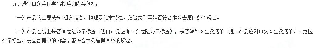 129号公告第五条关于进出口危险化学品检验内容,只保留了原来30号公告中的安全要求,更加聚焦“安全”要求,不再关注相关的品质、数量、重量等项目,检验的目的和重点一目了然。(来源:上海海关商品检验处)