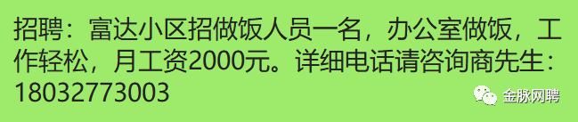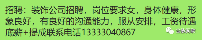 2.网络求职有风险,本号仅代发招聘信息方便大家获取信息,不对求职结果或问题负责,信息真伪请注意甄别。若有不实,请及时向小编反映;