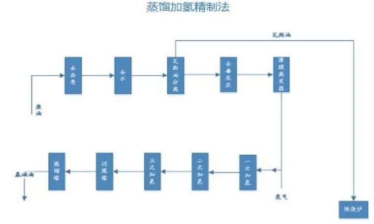 润滑油类能源-再生油蒸馏加氢精制法示意图