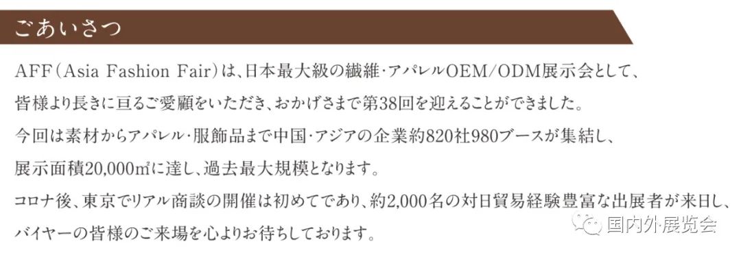 日本AFF纺织成衣展TOKYO2023